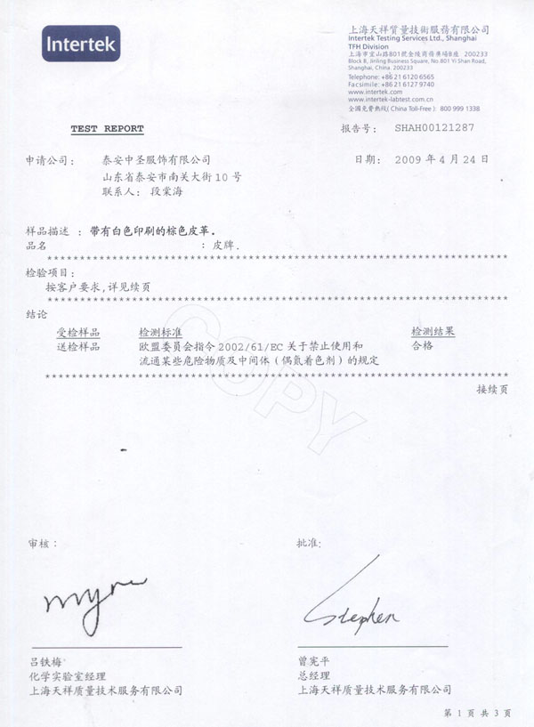 泰安中圣服飾有限公司是 在原山東豐柔皮革總廠(chǎng)(集團(tuán))皮件分廠(chǎng)的基礎(chǔ)上改制成立的以生產(chǎn)腰帶、箱包、皮牌等皮革制品為主的企業(yè)。主要產(chǎn)品有真皮腰帶、PU腰帶、PVC腰帶、織帶腰帶,服飾用皮牌、皮繩等皮革制品。